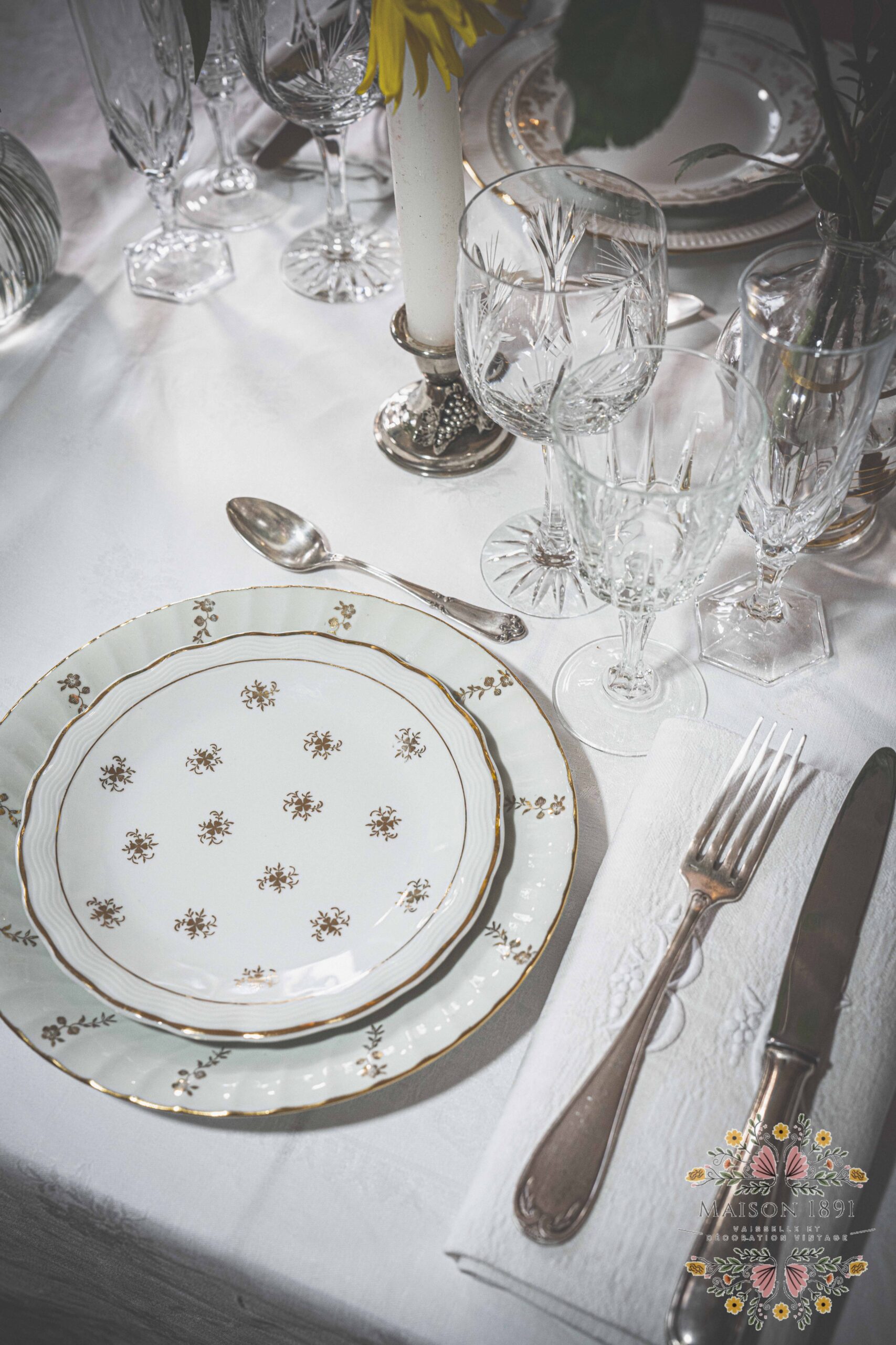 Associez vos verres anciens à une vaisselle de caractère avec notre service de location de vaisselle ancienne.